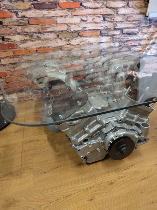 Stunningly beautiful industrial design Jaguar V12 Top End Coffee Table in Top Gear style.